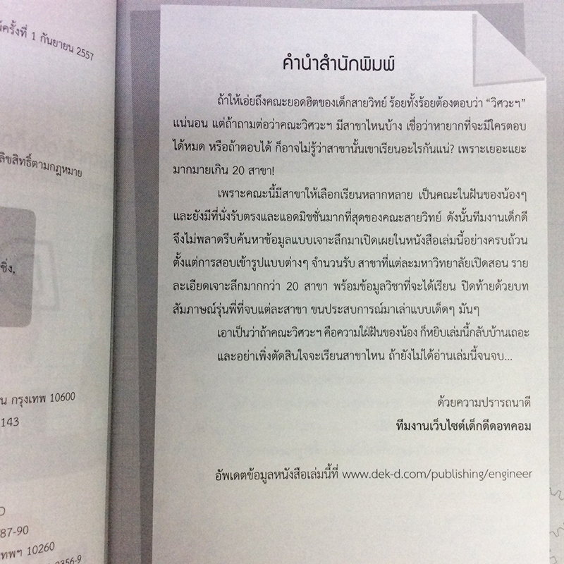 #กว่าจะเป็นวิศวกร #ปี2557 #คู่มือแนะแนวการศึกษาต่อคณะวิศวกรรมศาสตร์ #หนังสือ #การศึกษา #เด็กดีดอทคอม #Dek-D #คุ้มอักษรไทย  #หนังสือลดราคา #sales #หนังสือมือหนึ่ง #kumaksorthai