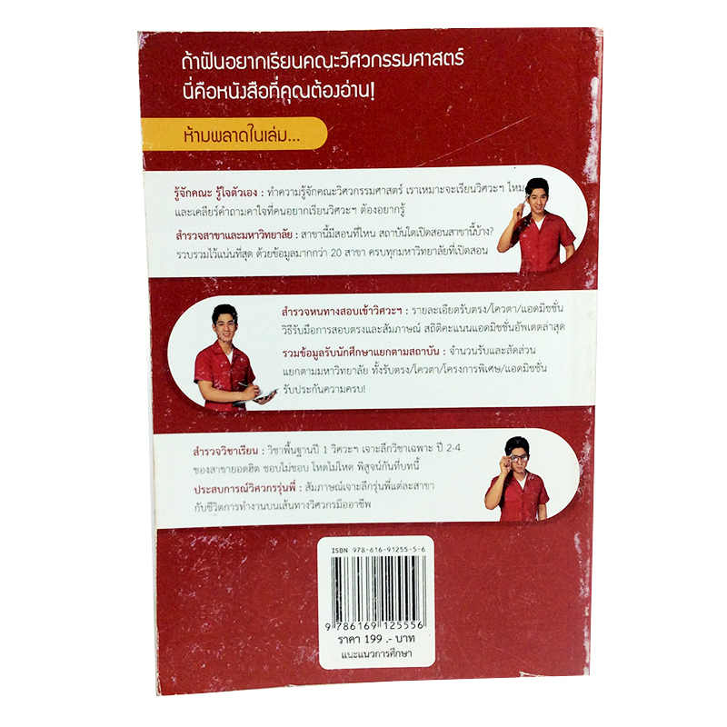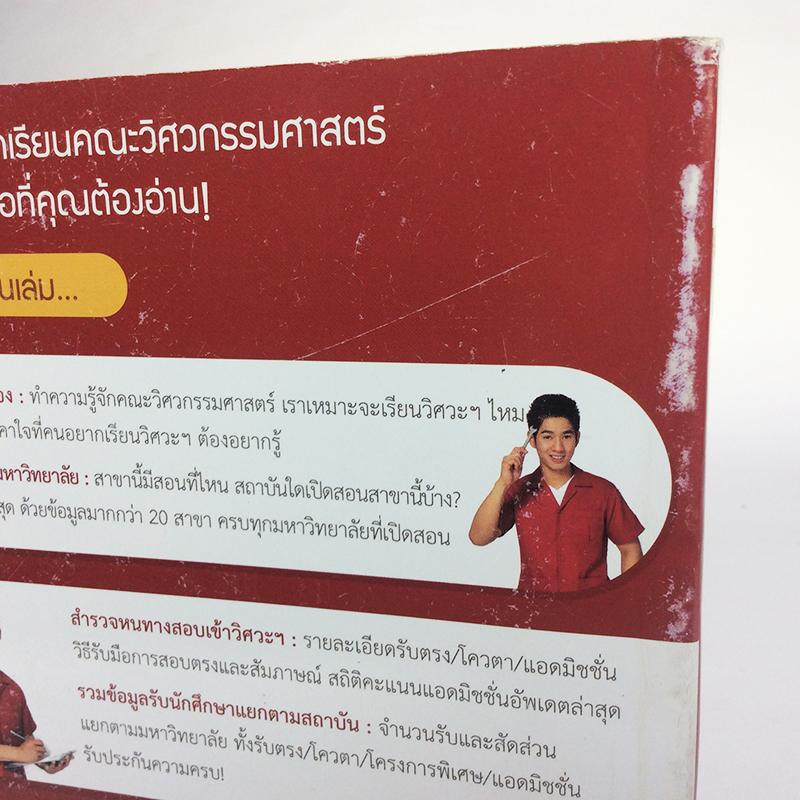 นี่คือหนังสือที่คนฝันอยากเรียนคณะวิศวกรรมศาสตร์ไม่ควรพลาด เนื้อหาในเล่มอัดแน่นไปด้วยประสบการณ์ตรงอันหลากหลายจากรุ่นพี่ เริ่มตั้งแต่ทำความรู้จักคณะวิศวกรรมศาสตร์ เคลียร์คำถามคาใจที่คนอยากเรียนวิศวะฯ ต้องอย่างรู้ สำรวจสาขาและมหาวิทยาลัยโดยรวบรวมไว้แน่นที่สุด ด้วยข้อมูลมากกว่า 20 สาขา ครบทุกมหาวิทยาลัยที่เปิดสอน สำรวจหนทางสอบเข้าวิศวะฯ รายละเอียดรับตรง โควตา แอดมิชชั่น วิธีรับมือการสอบตรงและสัมภาษณ์ สถิติคะแนนแอดมิชชั่นอัพเดทล่าสุด รวมข้อมูลรับนักศึกษาแยกตามสถาบัน จำนวนรับและสัดส่วนแยกตามมหาวิทยาลัย ทั้งรับตรง โควตา โครงการพิเศษ แอดมิชชั่น รับประกันความครบ สำรวจวิชาเรียน วิชาพื้นฐานปี 1 วิศวะฯ เจาะลึกวิชาเฉพาะปี 2-4 ของสาขายอดฮิต ชอบไม่ชอบ โหดไม่โหด พิสูจน์กันที่บทนี้ พร้อมบทสัมภาษณ์รุ่นพี่แต่ละสาขากับชีวิตการทำงานบนเส้นทางวิศวกรมืออาชีพ